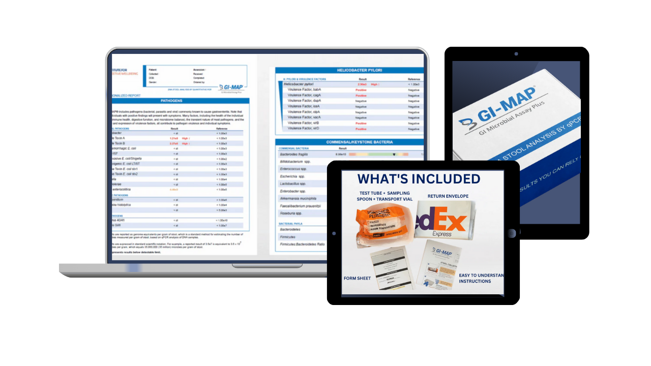 We begin with comprehensive functional stool testing to assess digestion, gut bacteria balance, inflammation, immune activity, and key markers that often get missed in standard care. From there, I translate your results into a personalized Action Plan—so you know exactly where to focus and why, and what steps to take.